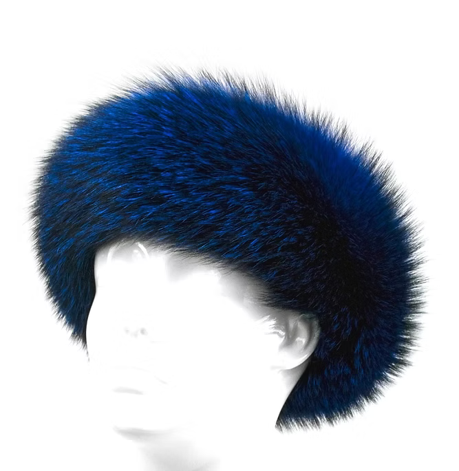Fox Fur Headband Electric Blue