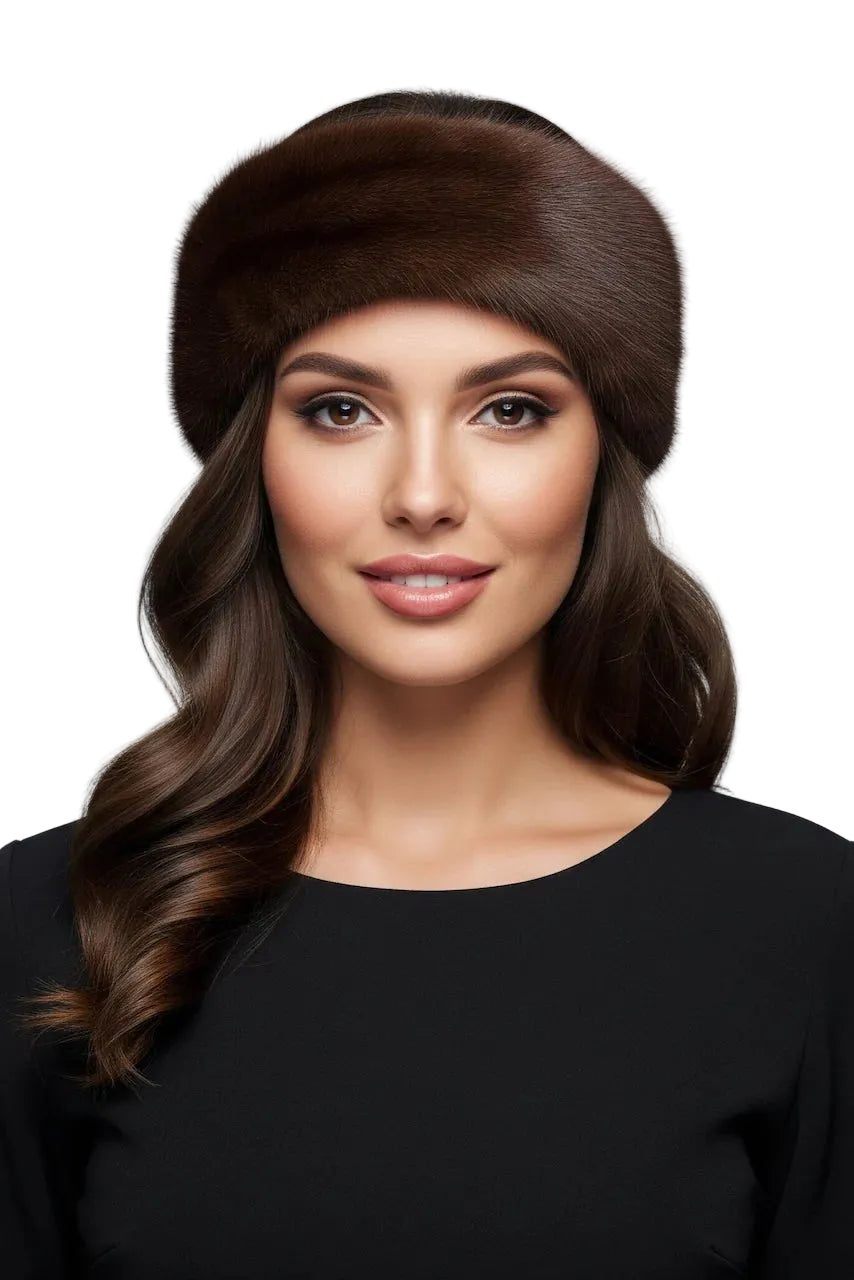 Mink Fur Headband Mahogany